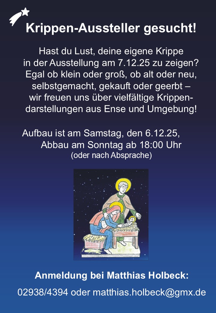 Egal ob klein oder groß, ob alt oder neu, selbstgemacht, gekauft oder geerbt - wir freuen uns über vielfältige Krippendarstellungen aus Ense und Umgebung!