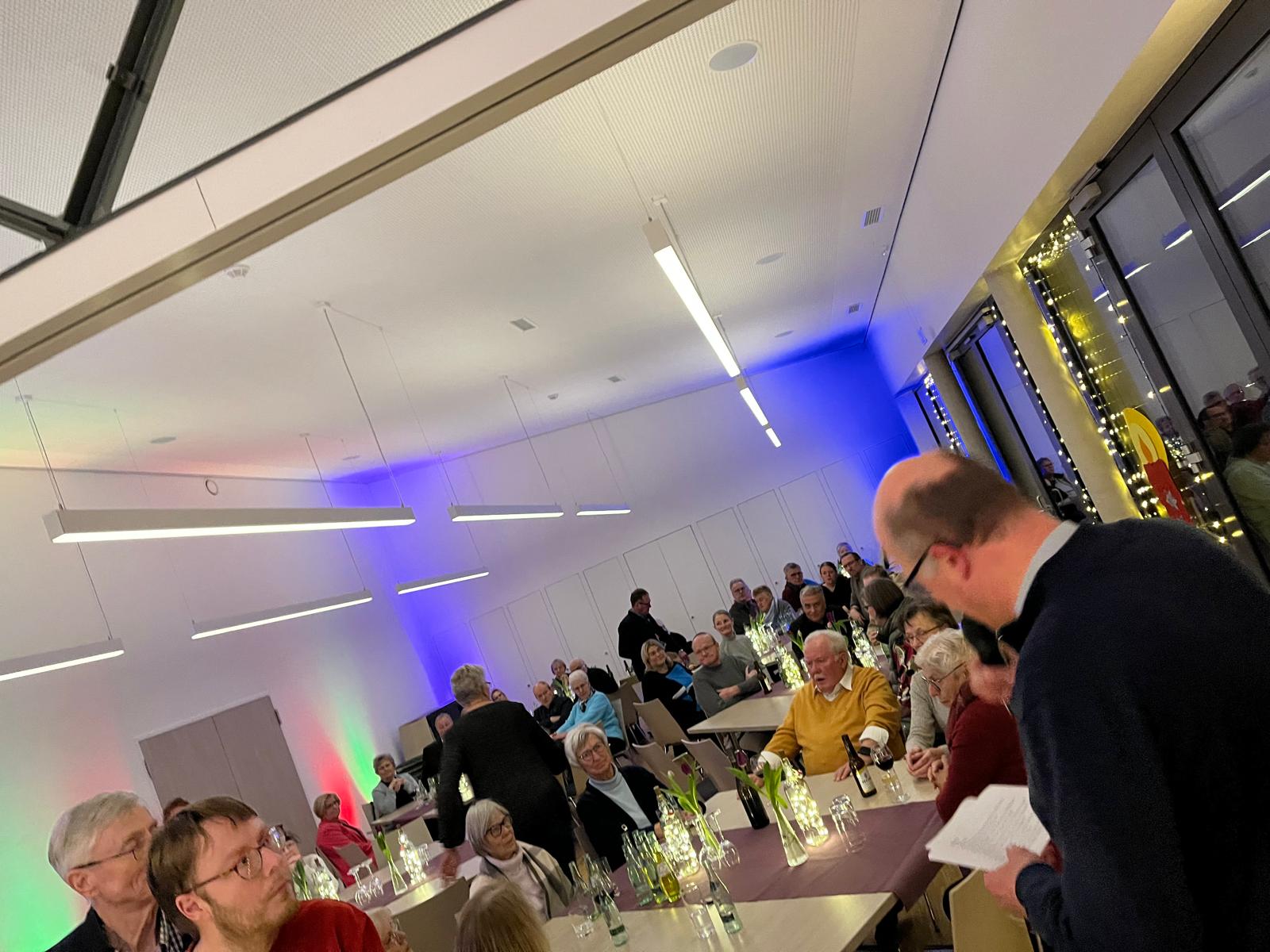 Bei einem gemeinsamen Essen bot sich anschließend reichlich Gelegenheit für Gespräche, Austausch und geselliges Beisammensein. In entspannter Atmosphäre wurden Erfahrungen geteilt, Erinnerungen ausgetauscht und neue Kontakte geknüpft. Der Abend klang in guter Stimmung aus und machte einmal mehr deutlich, dass Gemeinschaft von Begegnung lebt.