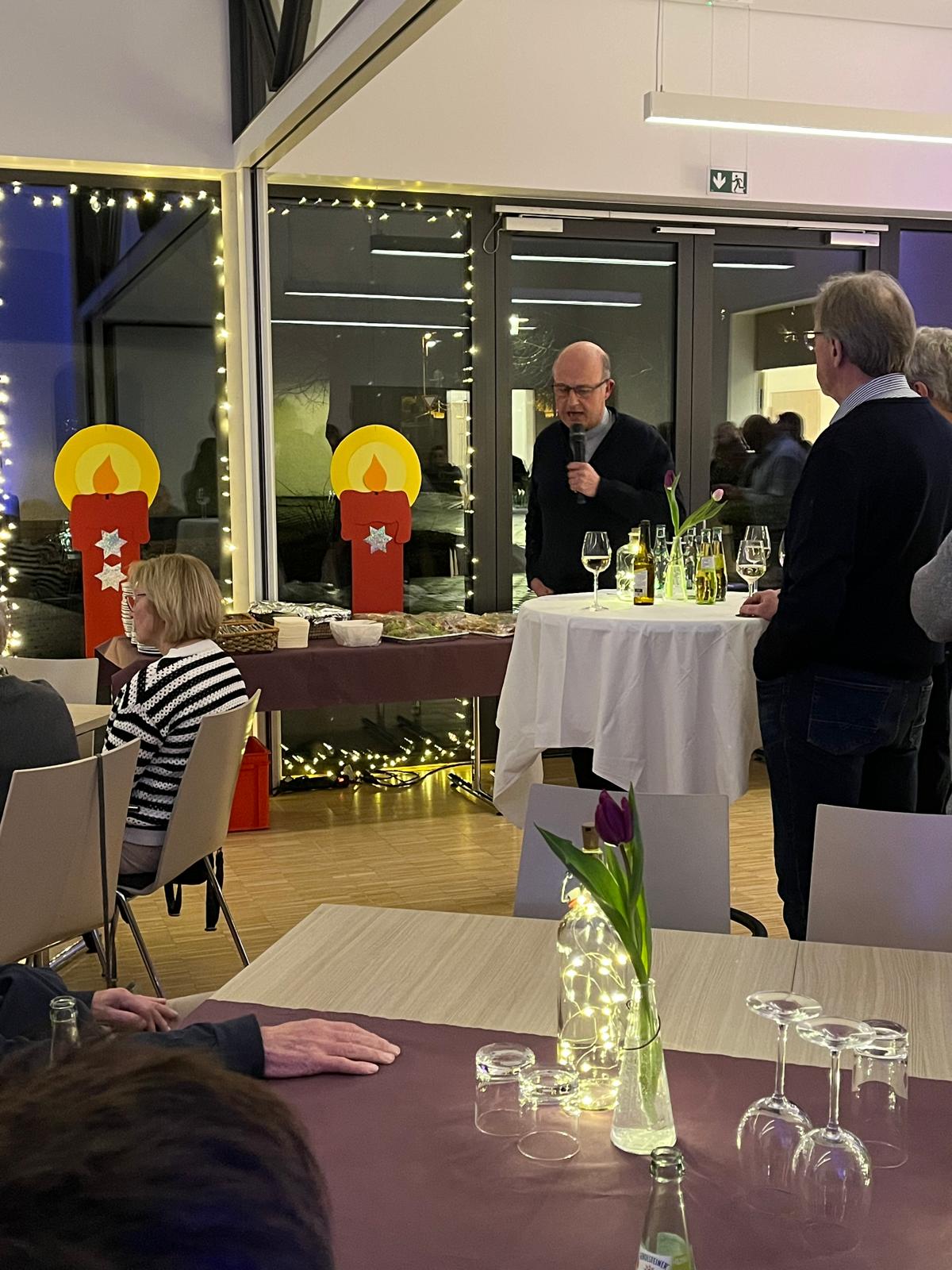 Im Mittelpunkt des Abends stand ein gemeinsamer Rückblick auf das vergangene Jahr im Hinblick auf die Gemeinden vor Ort und den Pastoralen Raum. In kurzen Ansprachen wurde deutlich, wie unverzichtbar das ehrenamtliche Engagement für das Gemeindeleben ist – sei es in der Liturgie, der Kinder- und Jugendarbeit, der Kirchenmusik, der Caritas oder bei vielen weiteren Aufgaben. Mit Dankbarkeit wurde auf zahlreiche Veranstaltungen, Projekte und Begegnungen zurückgeblickt, die ohne den Einsatz der Ehrenamtlichen nicht möglich gewesen wären.