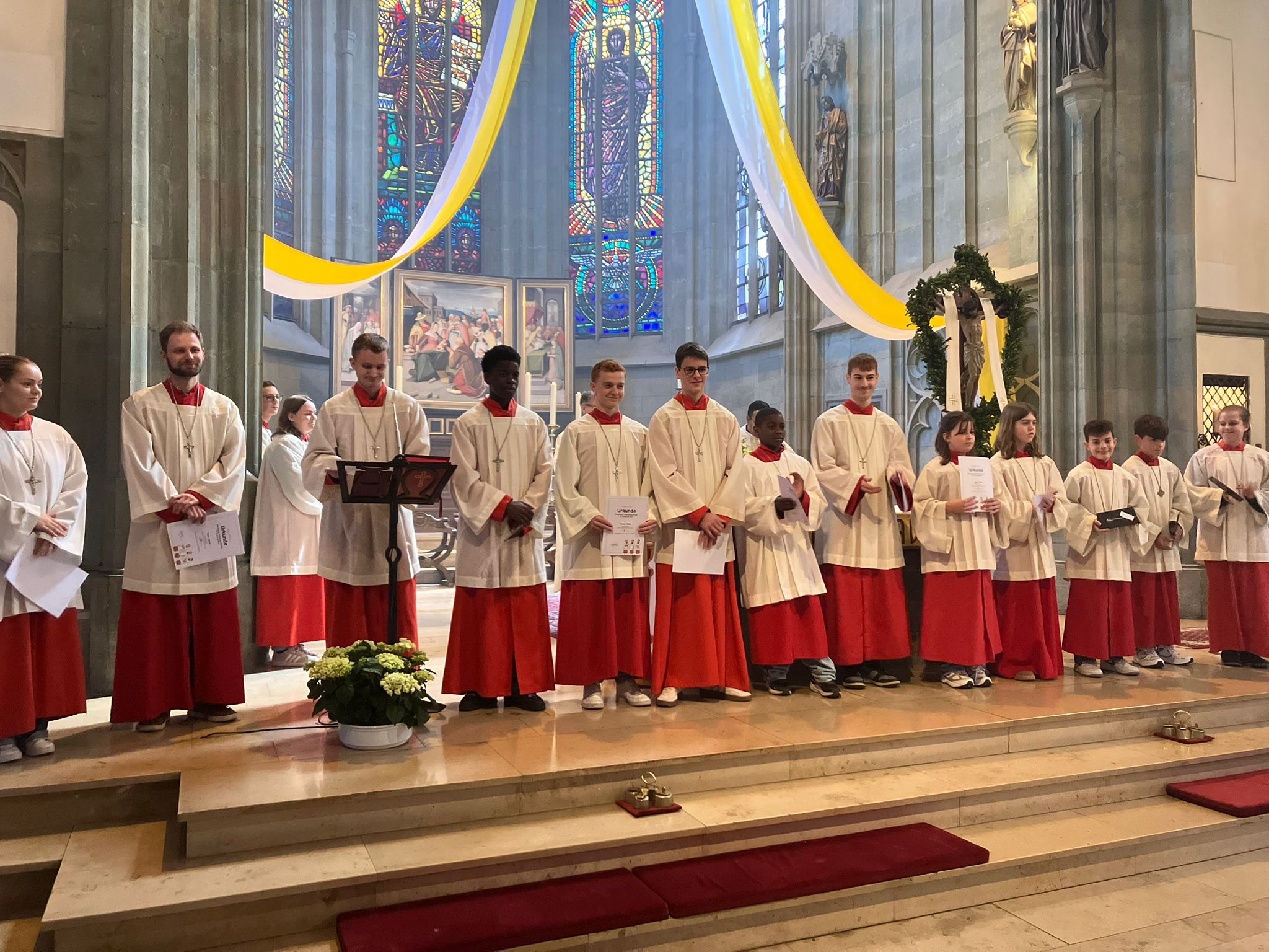 Darüber hinaus wurden mehrere Messdienerinnen und Messdiener für ihr langjähriges Engagement geehrt. Für ihren treuen und zuverlässigen Dienst in der Gemeinde erhielten die Messdienerinnen und Messdiener eine besondere Würdigung.