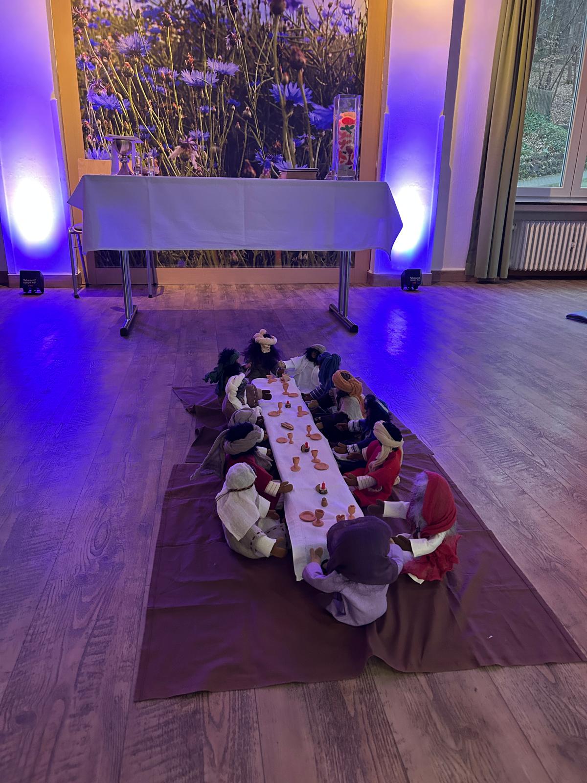 Ein Höhepunkt des Wochenendes war die kindgerecht gestaltete Feier des letzten Abendmahls, bei der das Teilen von Brot und die Bedeutung von Gemeinschaft im Mittelpunkt standen. Die gemeinsame Eucharistiefeier mit Pastor Carsten Scheunemann, in die die Kinder aktiv eingebunden waren.